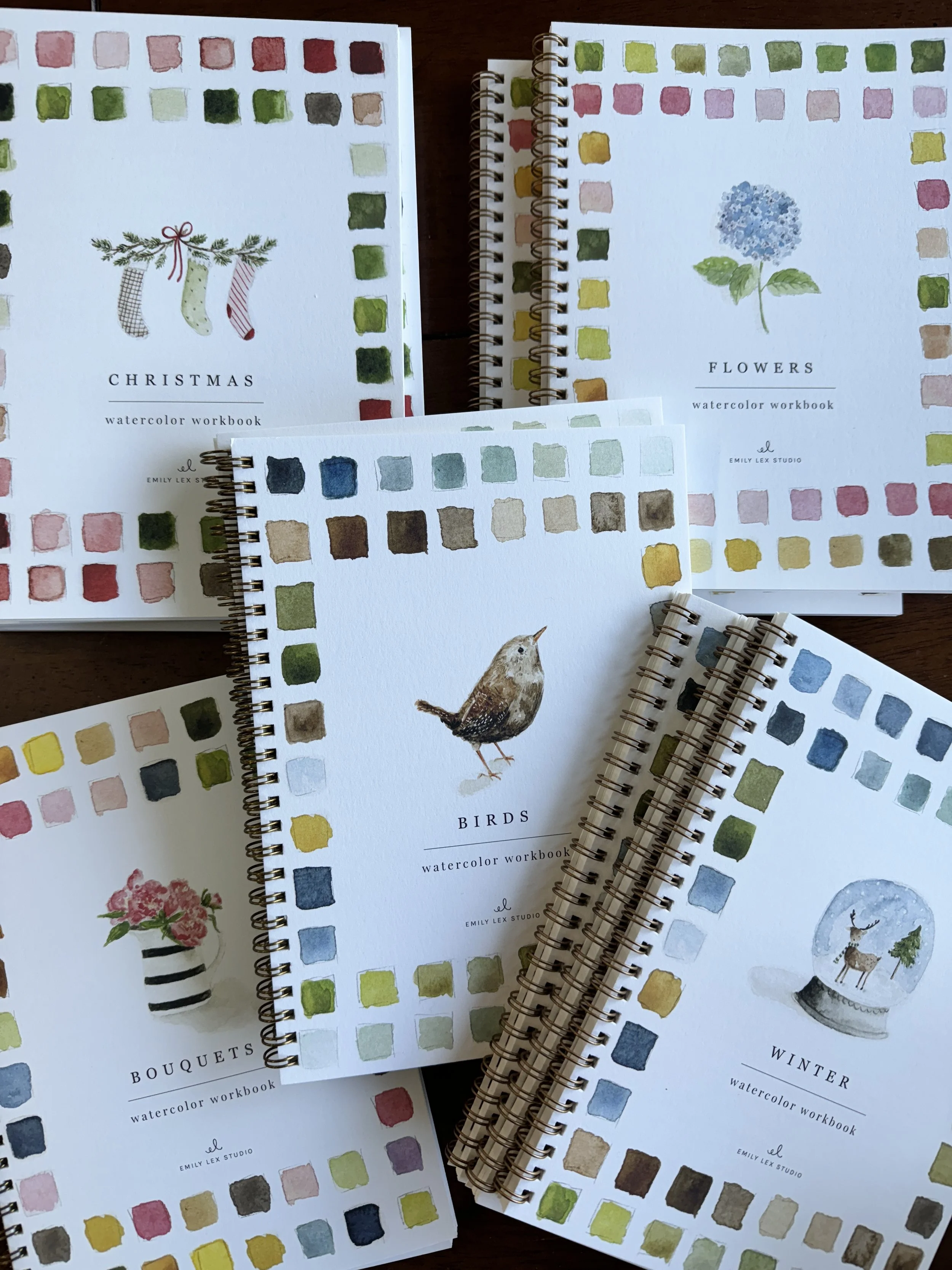 Stop by the shop to explore these delightful workbooks and discover how enjoyable watercolor can be with a little guidance and a lot of creativity. Relax, learn, and paint with Emily Lex Studio.