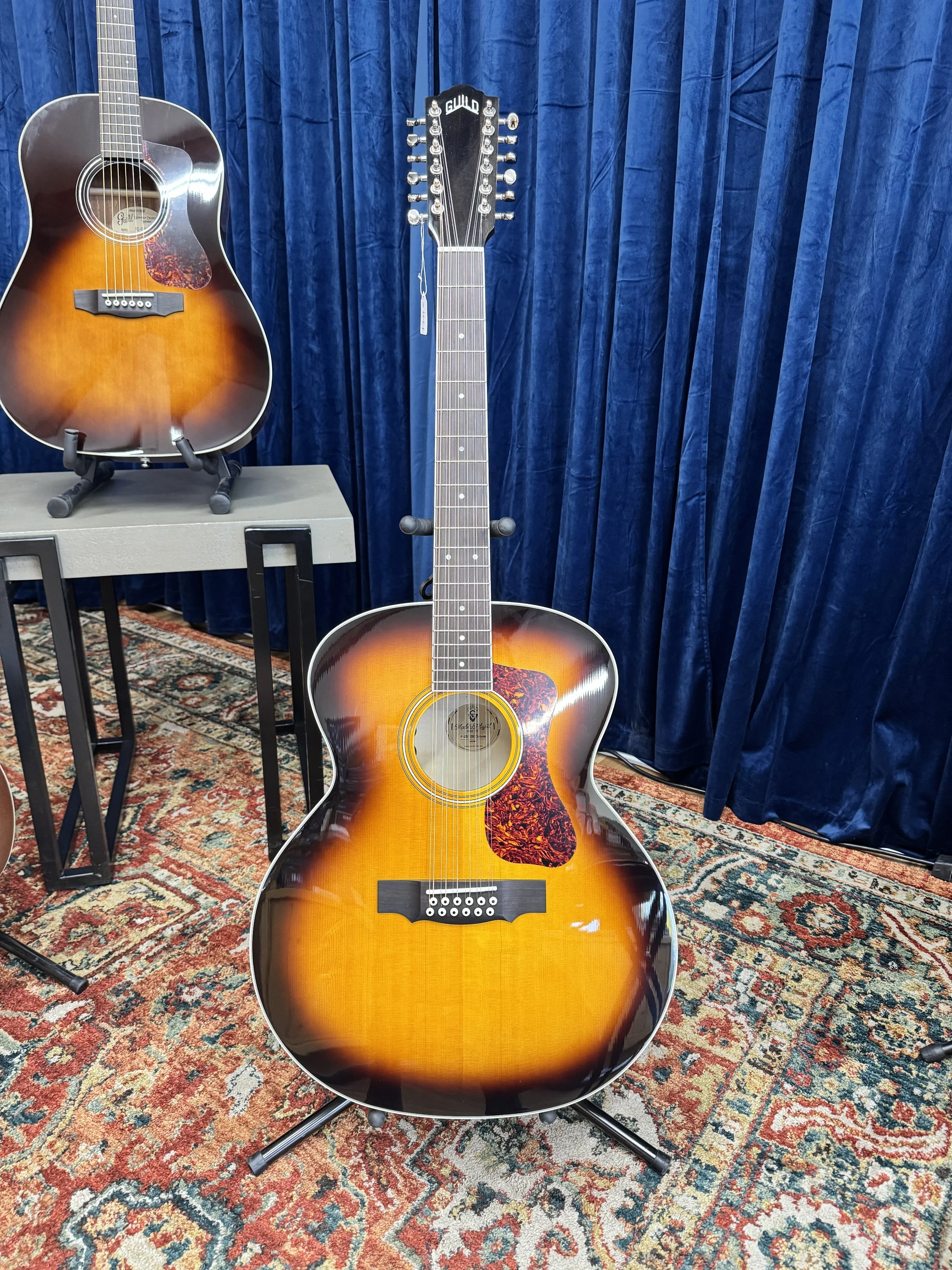 The Guild D-240E 200 Archback Dreadnought Natural is a premium acoustic-electric guitar designed for both stage and studio performance. Featuring a solid Sitka spruce top with mahogany back and sides, this dreadnought delivers a warm, balanced tone with excellent projection. The archback design enhances volume and resonance, making it ideal for strumming and fingerstyle playing. Equipped with a Guild FET preamp system, the D-240E 200 offers versatile amplified sound options, perfect for live gigs or recording sessions. Its sleek natural finish and rosewood fingerboard add classic style and playability for any musician.