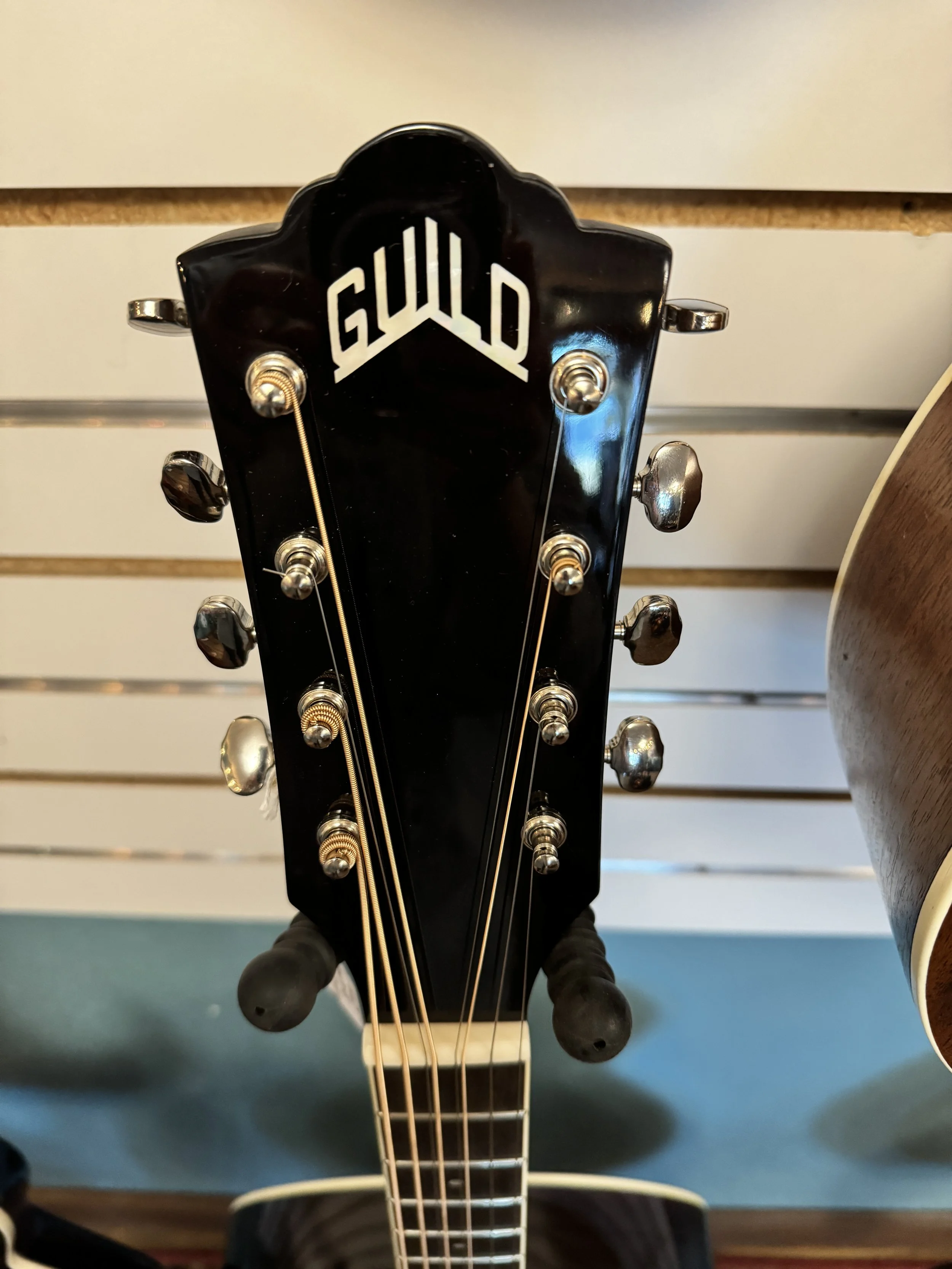 Classic Guild headstock with vintage-style tuners for stable tuning
